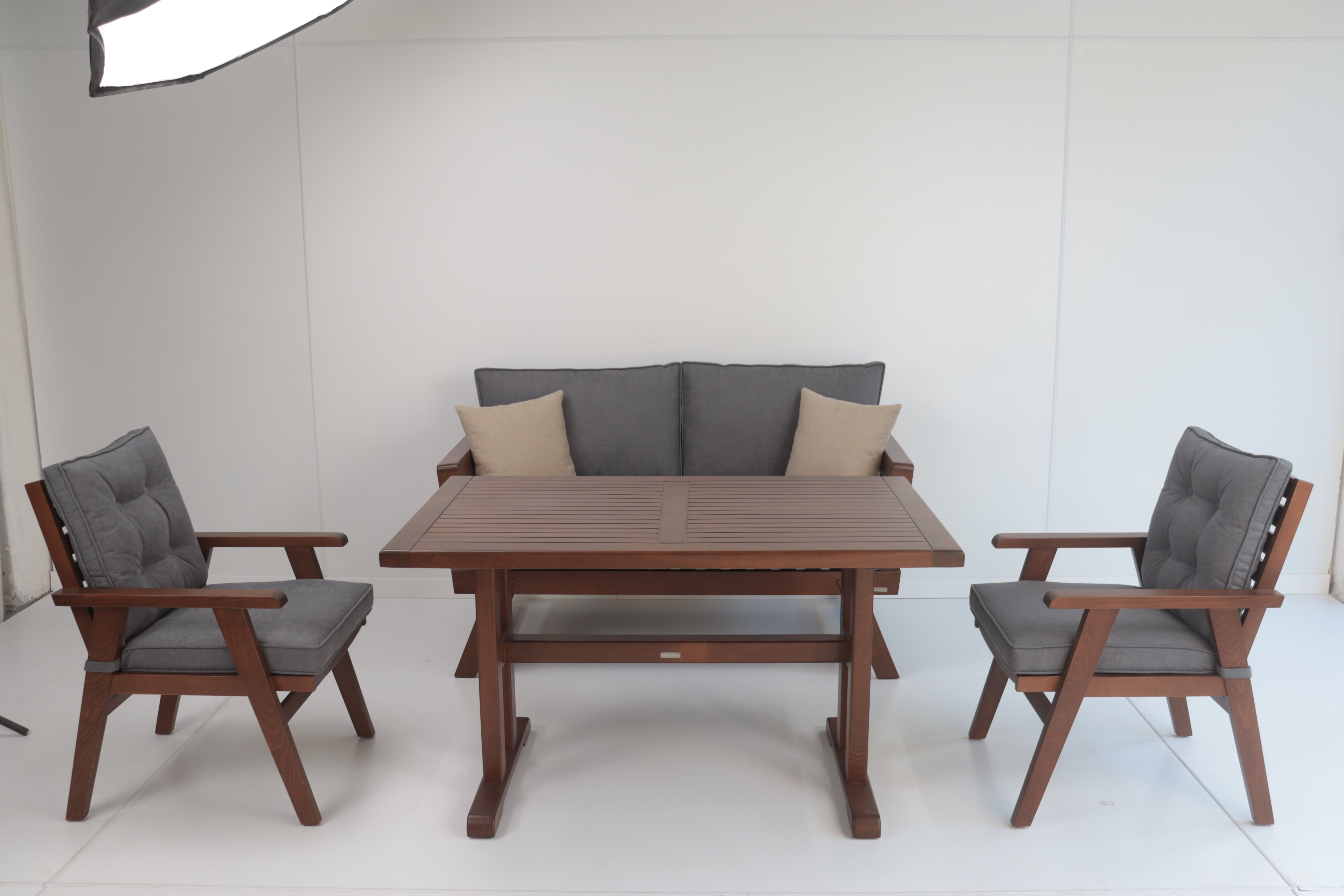 Paket İçeriği: 1 adet Babil Koltuk - Koyu Ceviz Rengi, 2 Adet Babil Sandalye - Koyu Ceviz Rengi, 1 Adet York Royal Masa - Koyu Ceviz Rengi