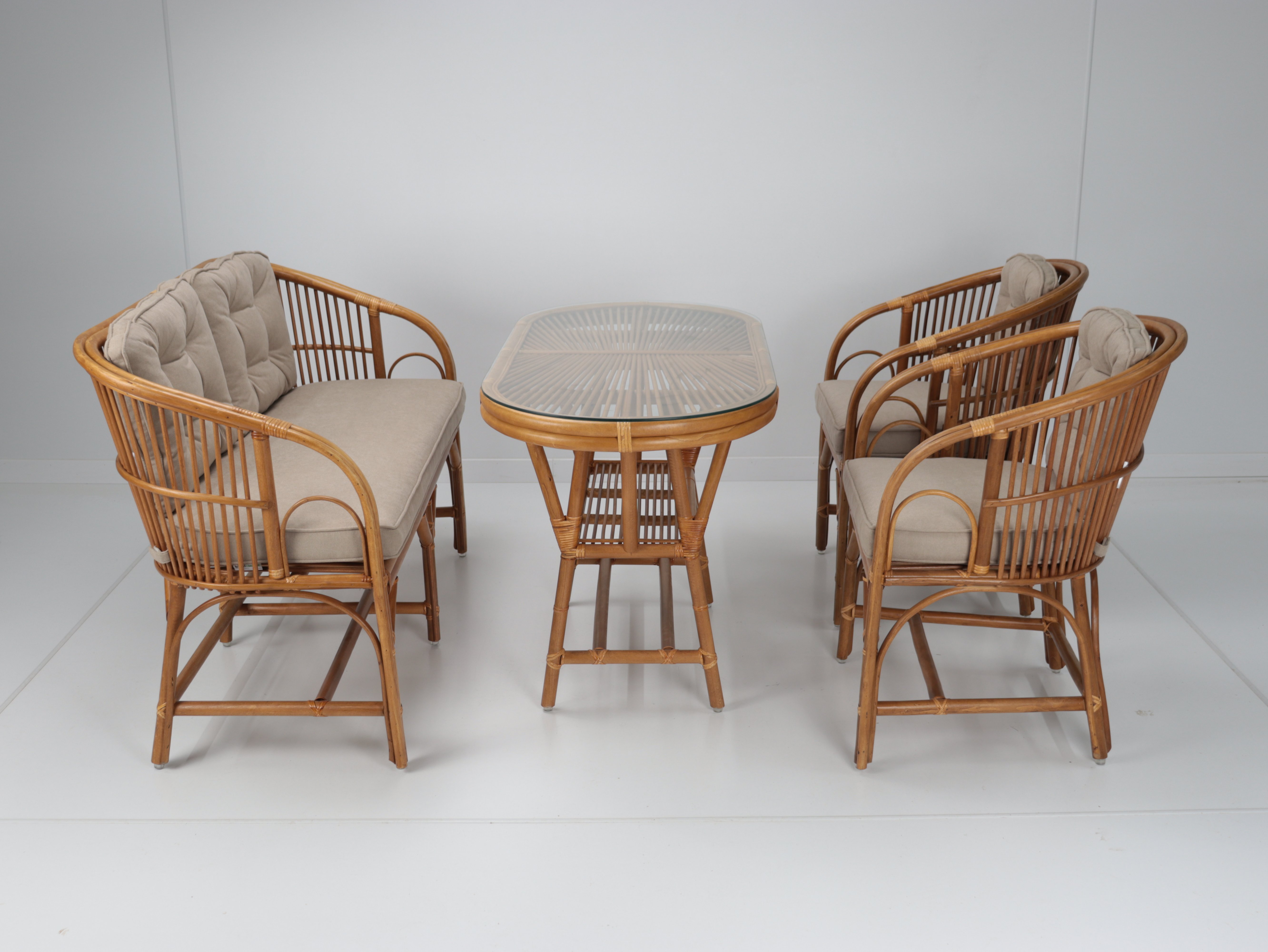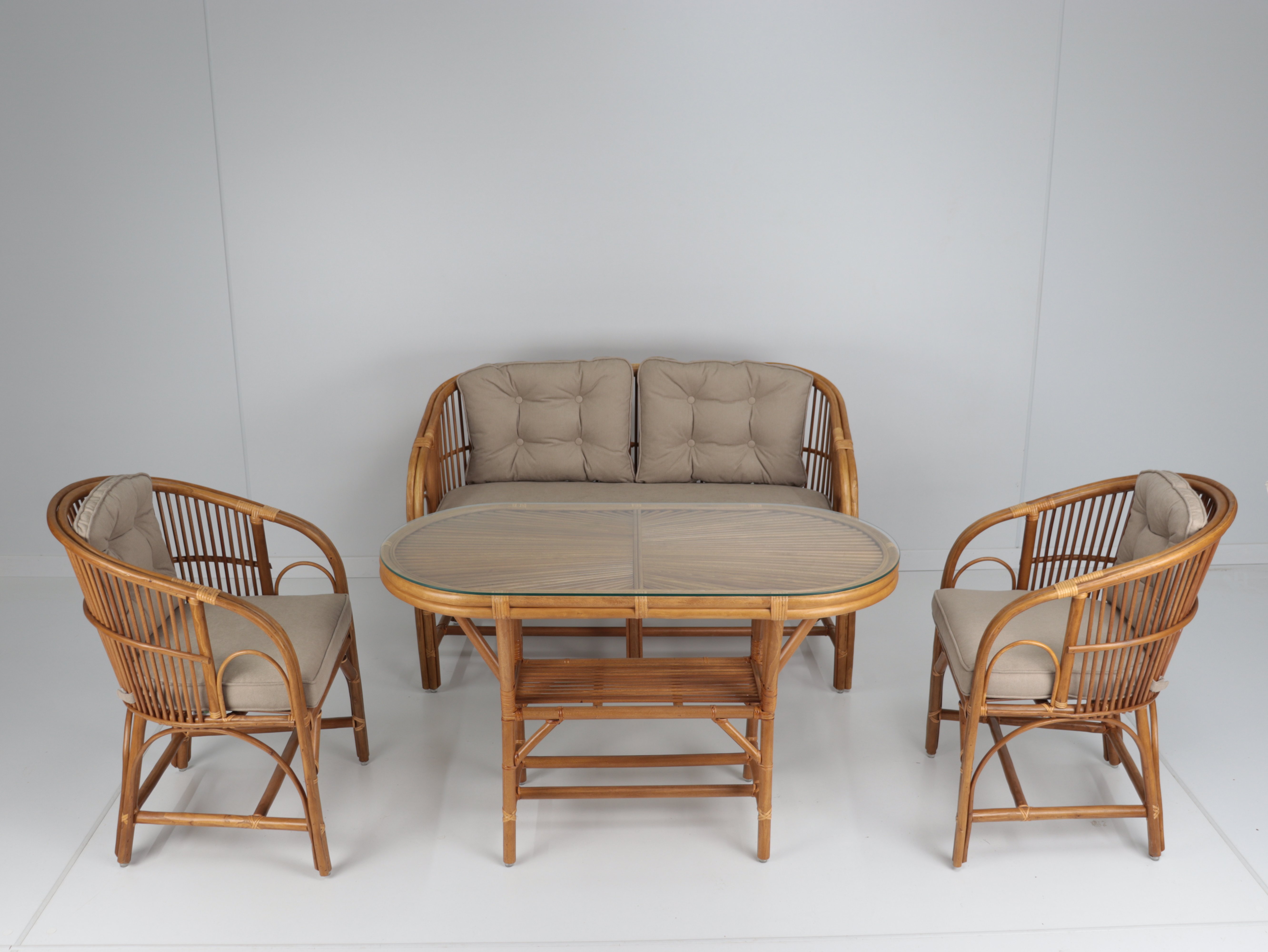 Paket İçeriği: 1 Adet Beyrut Koltuk - Bal Rengi, 2 Adet Beyrut Sandalye - Bal Rengi, 1 Adet Oval Seyrek Masa - Bal Rengi