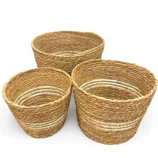 Paket İçeriği: 1 Adet Üçlü Kapaklı Hasır Sepet Seti