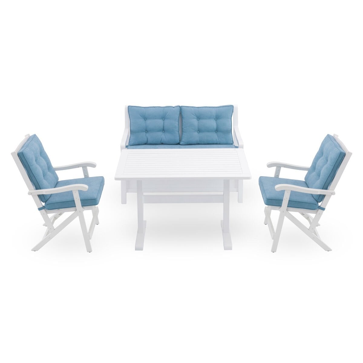 Paket İçeriği: 1 Adet Sandıklı Bank 125 cm, 2 Adet Berlin Sandalye, 1 Adet York Masa 60x110 cm - Beyaz