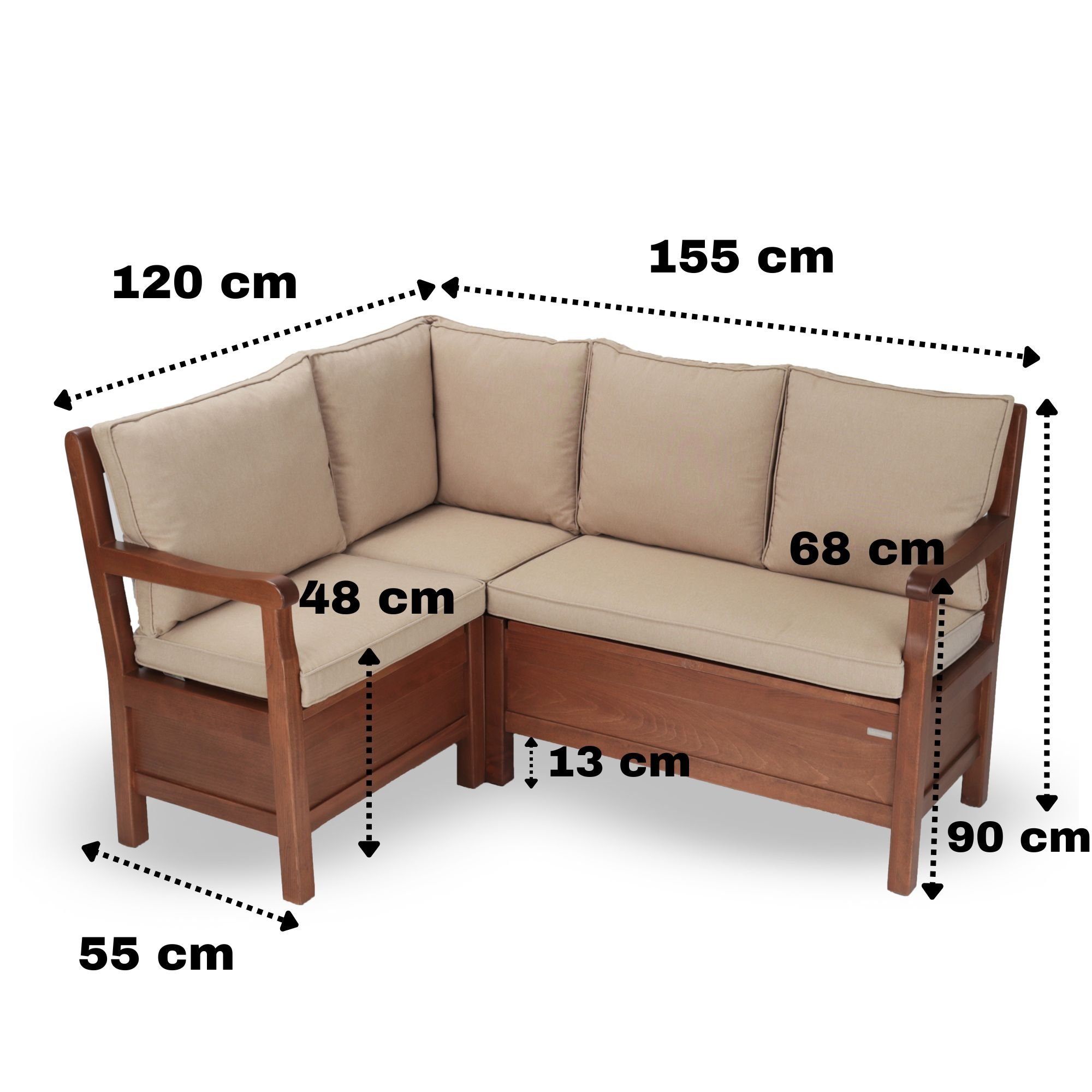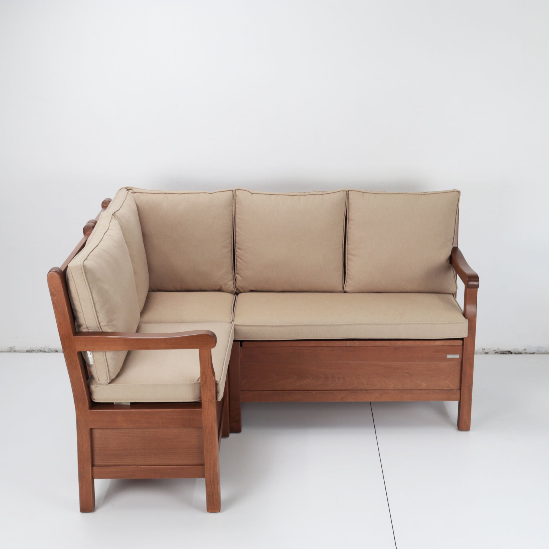 Kurulum: Sandıklı köşe koltuk 3 parça olarak gönderilir. Köşe yerleri tasarlanmış 3 ayrı koltuk formundadır. Bu üç parçayı birbirine L koltuğu oluşturacak şekilde konumlandırıp önceden hazırlanmış montaj yerlerinden kolayca vidalama işlemi yapılır. Setin diğer parçaları kurulum gerektirmez.