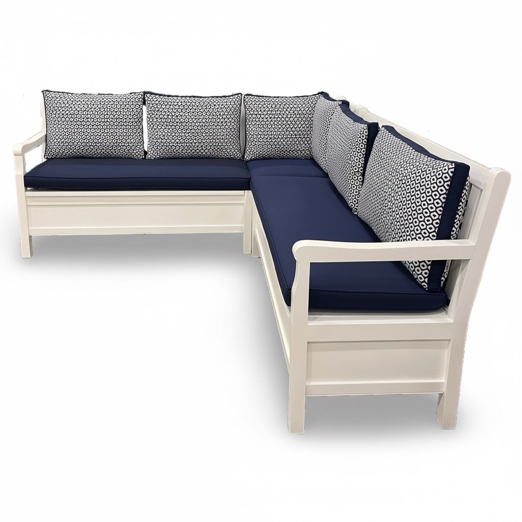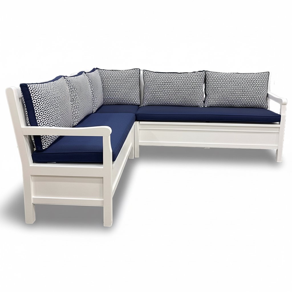 Kurulum: Sandıklı köşe koltuk 3 parça olarak gönderilir. Köşe yerleri tasarlanmış 3 ayrı koltuk formundadır. Bu üç parçayı birbirine L koltuğu oluşturacak şekilde konumlandırıp önceden hazırlanmış montaj yerlerinden kolayca vidalama işlemi yapılır. Setin diğer parçaları kurulum gerektirmez.