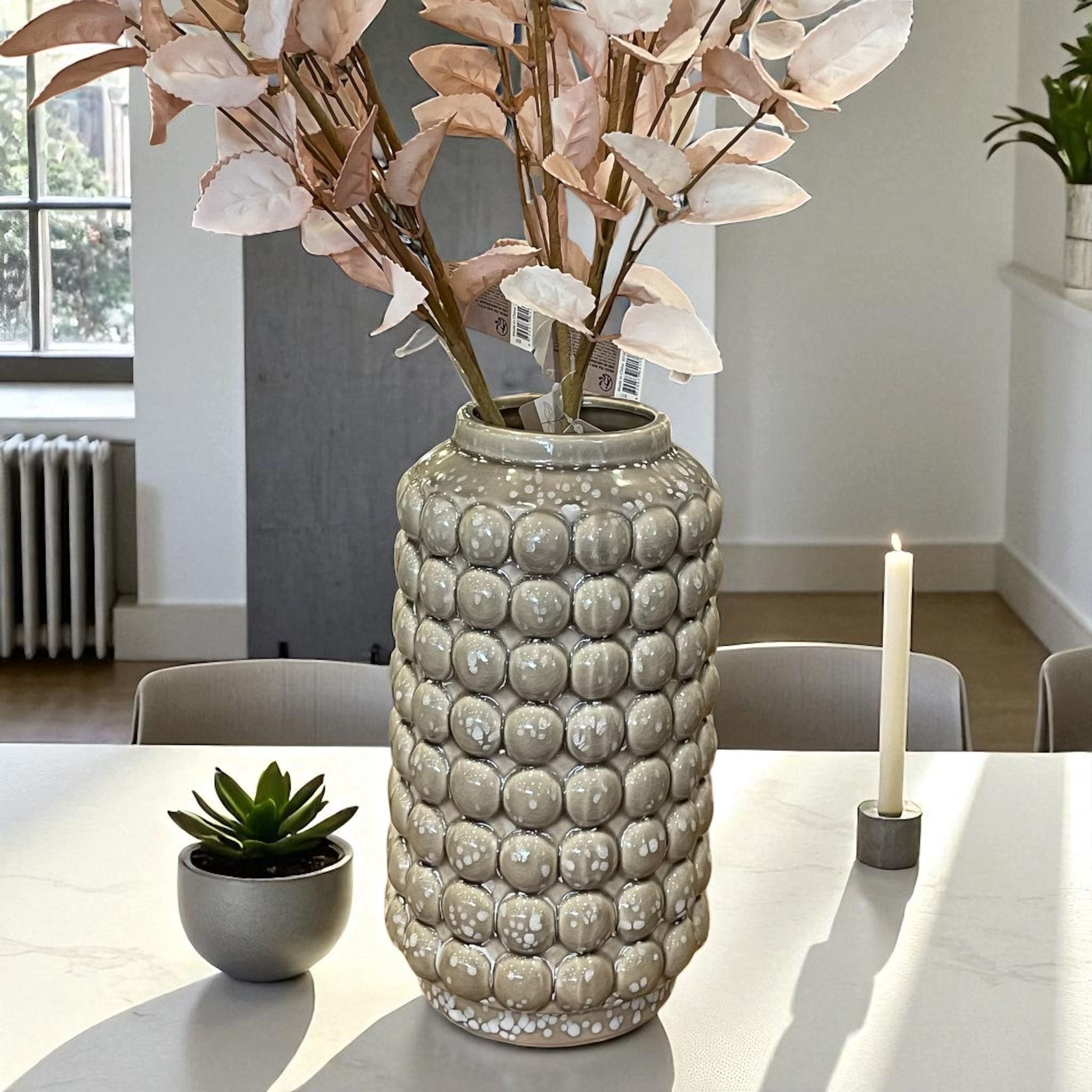 Paket İçeriği: 1 Adet Seramik Bej Baloncuklu Vazo