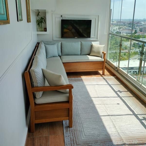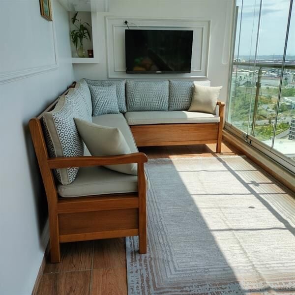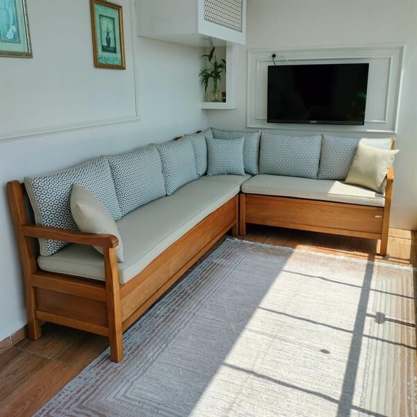 Kurulum: Sandıklı köşe koltuk 3 parça olarak gönderilir. Köşe yerleri tasarlanmış 3 ayrı koltuk formundadır. Bu üç parçayı birbirine L koltuğu oluşturacak şekilde konumlandırıp önceden hazırlanmış montaj yerlerinden kolayca vidalama işlemi yapılır. Setin diğer parçaları kurulum gerektirmez.